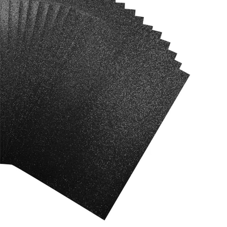 The card is flexible yet durable, featuring glitter on one side and a glossy finish on the other. Ideal for crafts, decorations, and invitations, it offers a sparkling, mess-free finish that enhances any creative project.